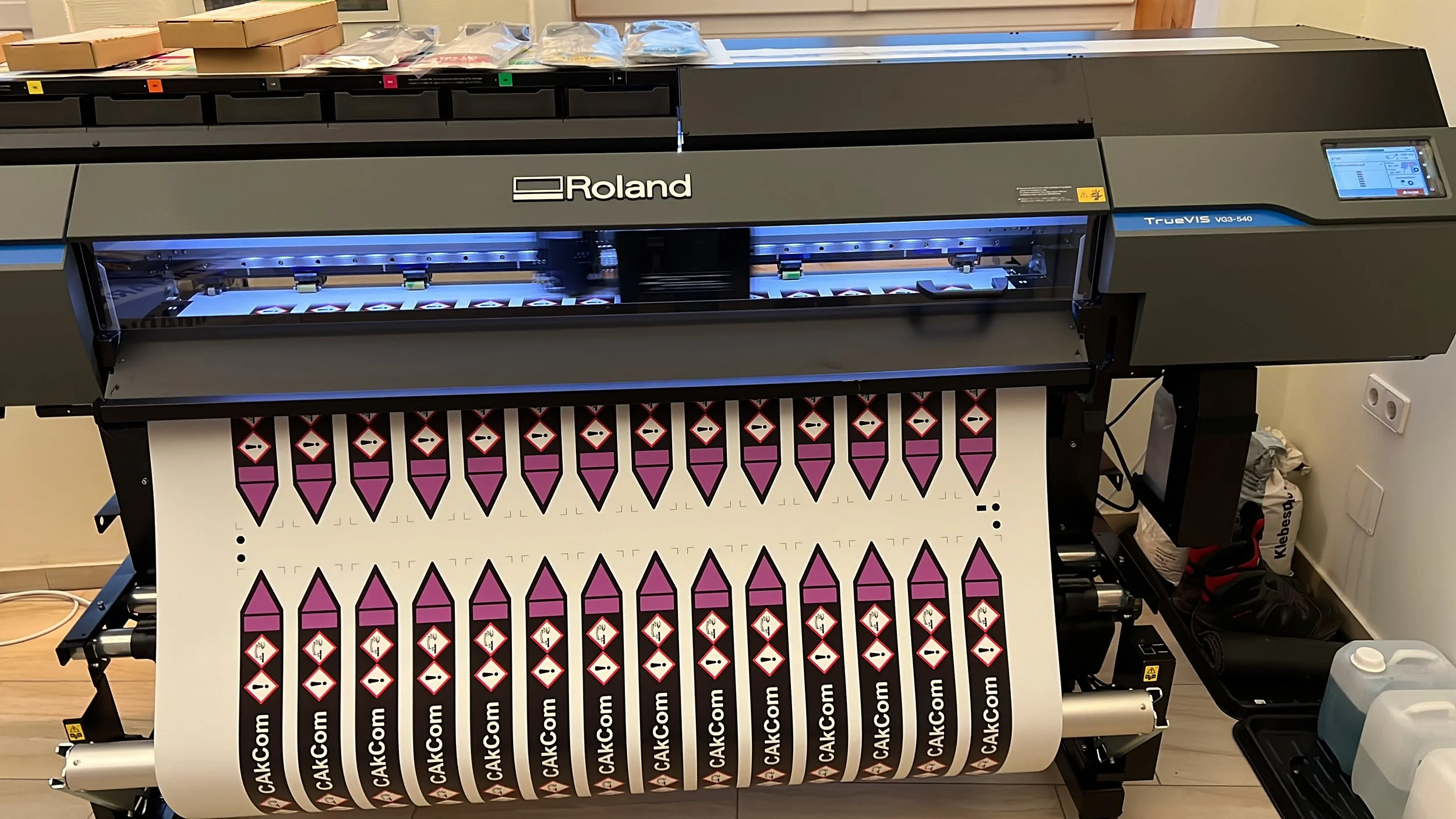 Roland Drucker für die Produktion von Rohrleitungskennzeichnungen, Industrie- und Mediumaufkleber. Diese sind ein essenzieller Bestandteil der betrieblichen Sicherheit